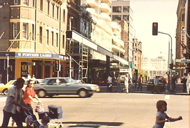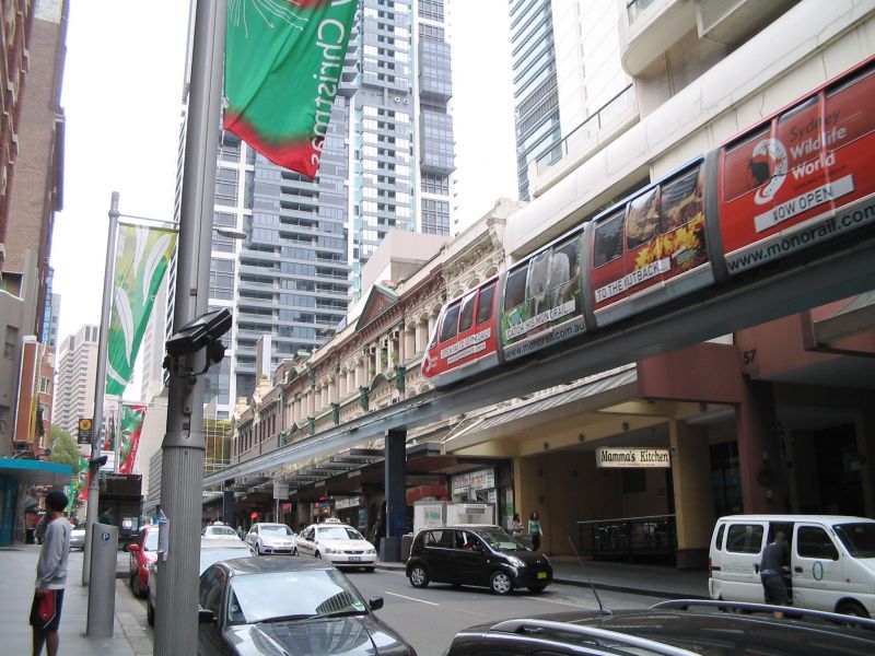 Sydney Monorail across Pyrmont bridge with City skyline City of Sydney archives 034633 A time lapse picture of a monorail on the traverser sometime in 1988. Taken December '06 City of Sydney archives 034628
